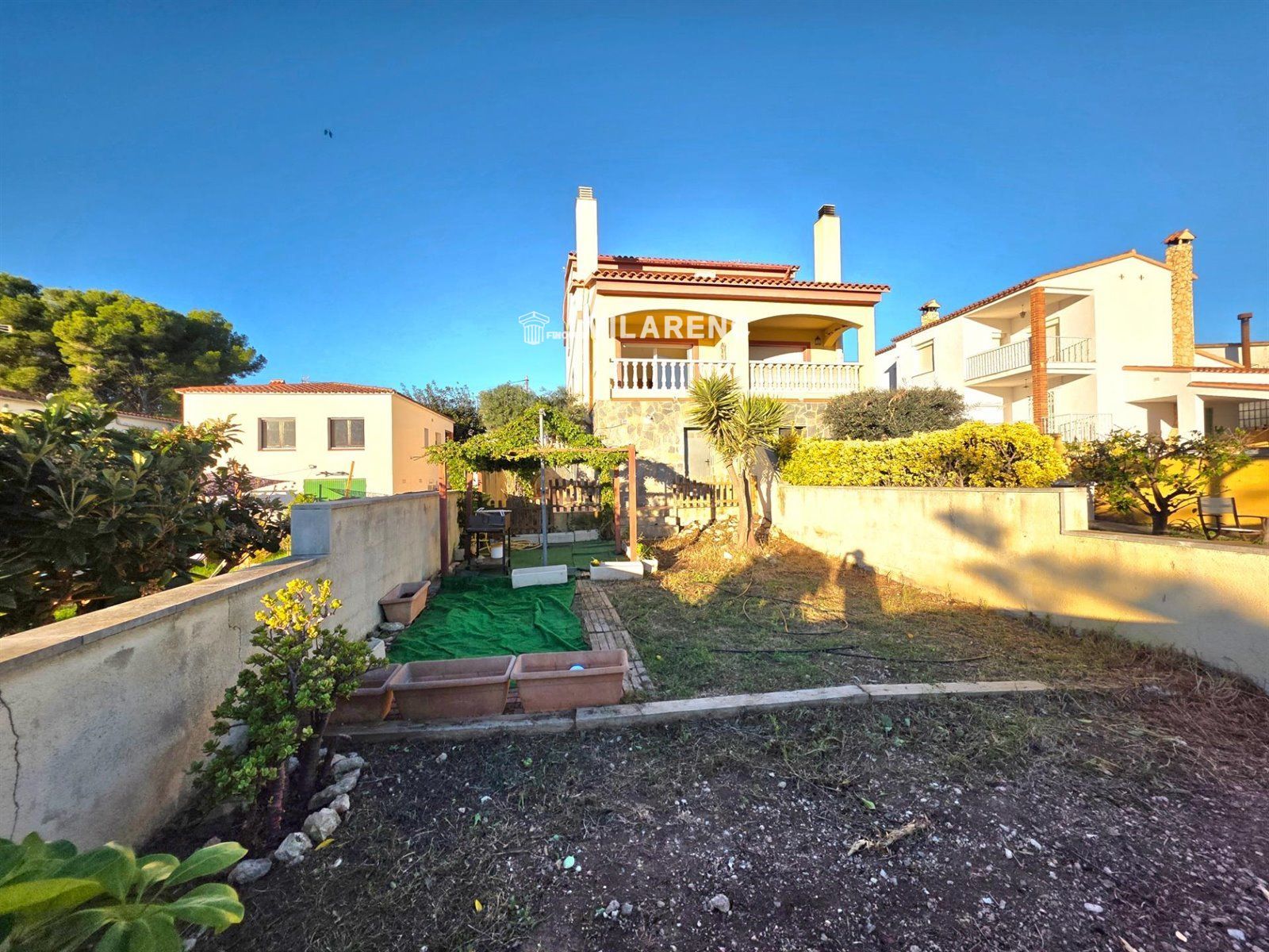 Descubre este impresionante pareado ubicado en la zona tranquila del Castell de Montornés, ideal para quienes buscan un hogar confortable cerca del mar. Con una superficie construida de 179 m² y útil de 122 m², esta propiedad se encuentra en buen estado y ofrece orientación sur, lo que garantiza luminosidad durante todo el día. El inmueble cuenta con dos habitaciones dobles amplias, una de ellas suite, y dos individuales, de ellas una es en planta junto a baño completo. También dispone de tres baños que añaden funcionalidad a los espacios familiares...La cocina es independiente, mide aproximadamente 10m² y está perfectamente equipada para disfrutar momentos inolvidables cocinando. Su salón espacioso (25m²) permite crear ambientes acogedores junto a seres queridos mientras disfruta vistas despejadas desde sus áreas exteriores como la terraza privada (8m²). ..Incluye en la planta sótano garaje para dos coches...En el exterior encontrará una parcela generosa de 265 m² con gran jardin de 60 m2 ideal para relajarse o jugar al aire libre si tiene niños pequeños gracias a las zonas infantiles cercanas dentro urbanización bien mantenida..Además entre sus extras destacan parking privado seguro frente puerta blindada principal ofreciendo tranquilidad total así mismo trastero adicional donde almacenar pertenencias sin preocupaciones adicionales sobre espacio disponible! Localizada solo cinco kilómetros distantes playa más próxima brindándole oportunidad aprovechar actividades recreativas marítimas locales incluyendo deportes acuáticos populares!.Idealmente conectada mediante transporte público accesible autobuses regulares hacia distintos puntos clave alrededor área: colegios reconocidos centros comerciales variados opciones diversión familiar aseguran satisfacción completa residencia soñadora.
