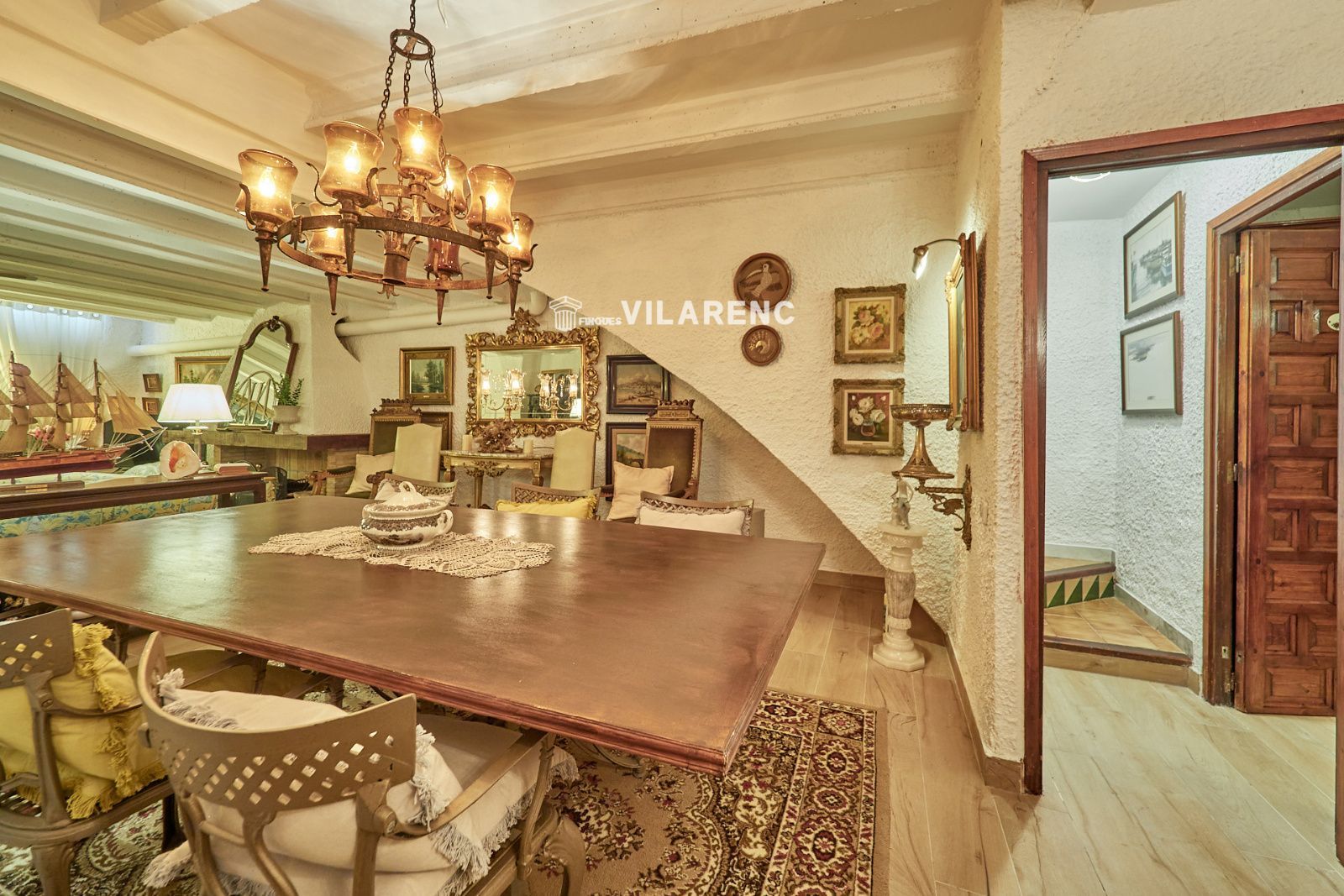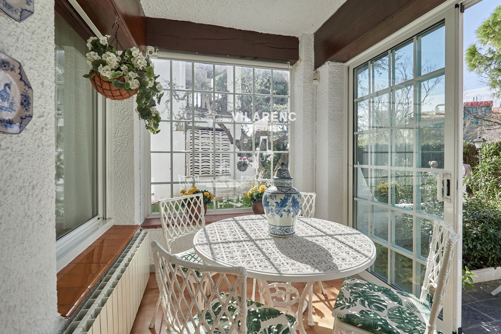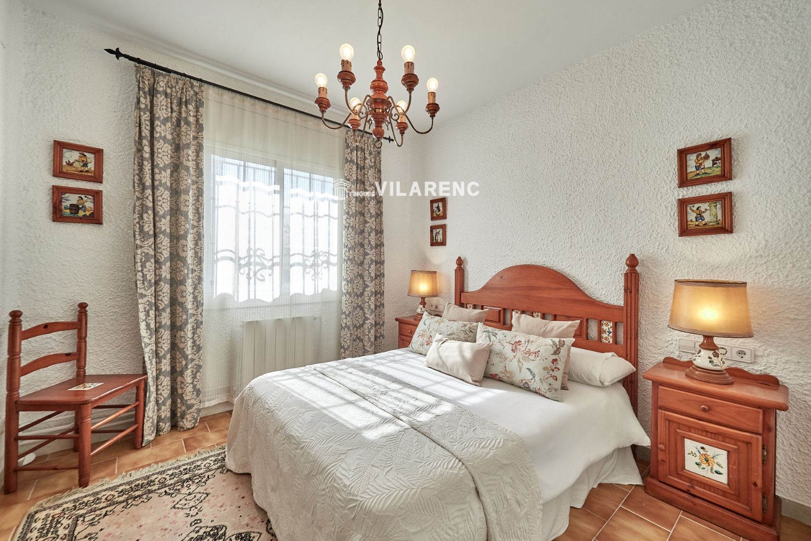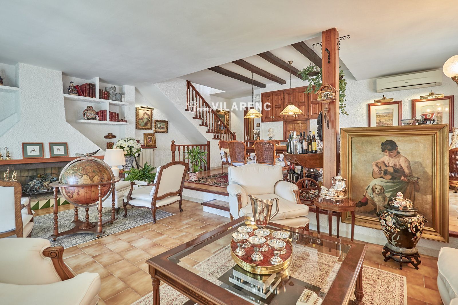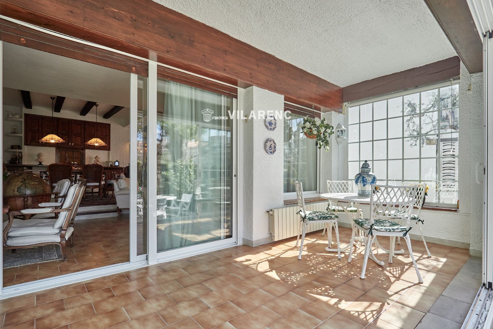 La distribución está pensada para aprovechar el espacio al máximo. En la primera planta nos encontramos con una bonita cocina amueblada y equipada con un estilo rústico y moderno acorde al estilo de la vivienda, un baño completo y un estiloso y amplio salón comedor a dos niveles ideales para crear dos ambientes perfectos ( sala de estar y zona comedor) con chimenea , desde este accedemos a una terraza con cerramiento de aluminio que nos da la opción de disfrutarla tanto en verano como en invierno y un pequeño y acogedor jardín. En la segunda planta nos encontramos con tres habitaciones dobles todas ellas exteriores con un bonito estilo cada uno. La principal es suite con salida a terraza en la que nos encontramos con un lavadero. Las otras dos estancias acceden a un baño común completo y una de ellas tiene salida a una pequeña terraza. Los armarios empotrados en todas las habitaciones facilitan el orden y almacenamiento de los espacios. La vivienda, al ser esquinera y toda exterior, cuenta con mucha luz natural. Dos chimeneas aportan calidez en las estaciones más frías mientras que el aire acondicionado, y la calefacción radial a gas natural, mantienen una climatización agradable durante todo el año. A la planta semi sótano accedemos desde el comedor y nos sorprende su amplio espacio. Un salón de unos 50m² y tres pequeñas habitaciones ó zonas de almacenamiento. Ideal para reuniones con amigos y familiares.