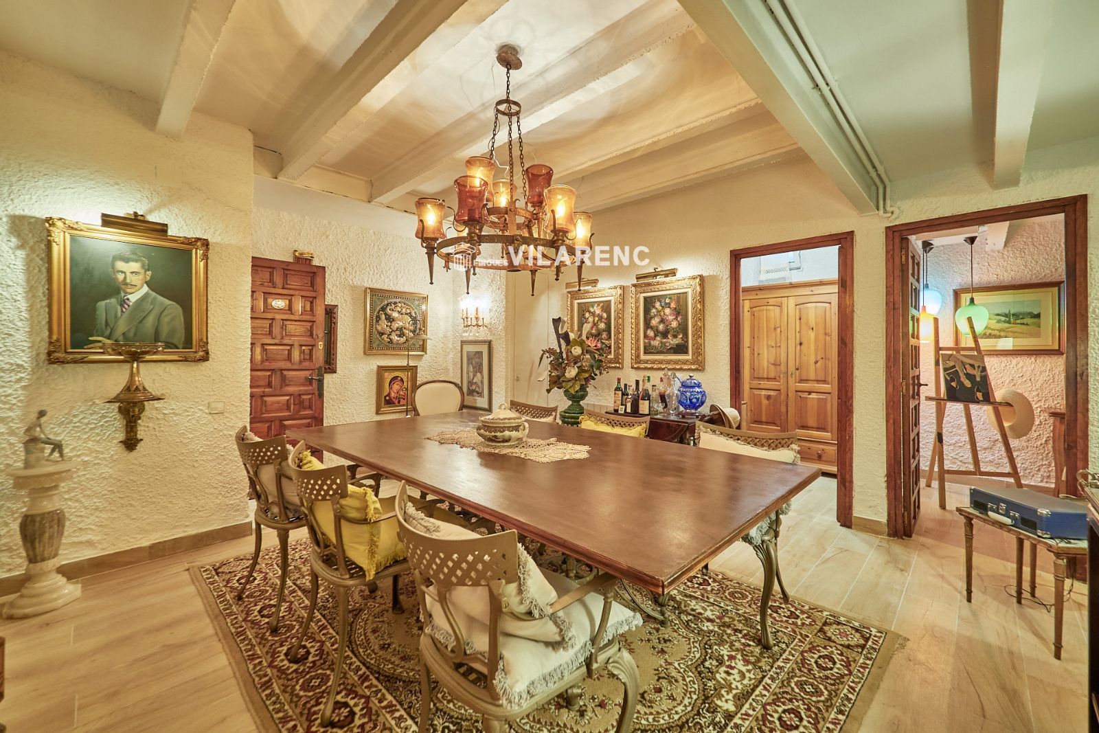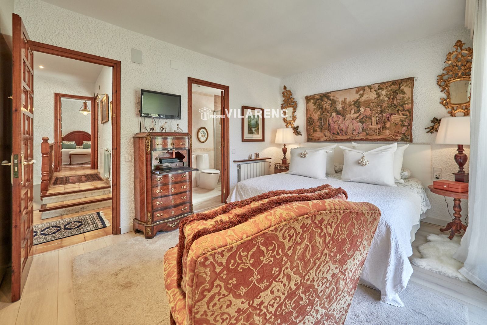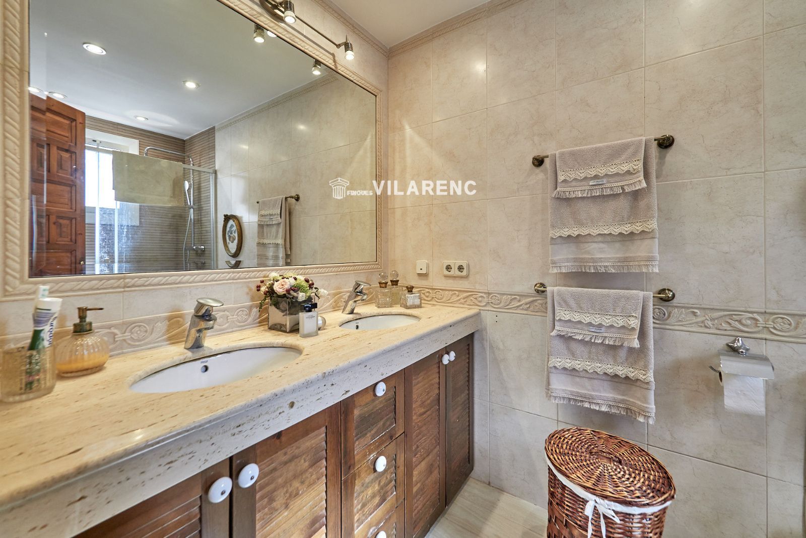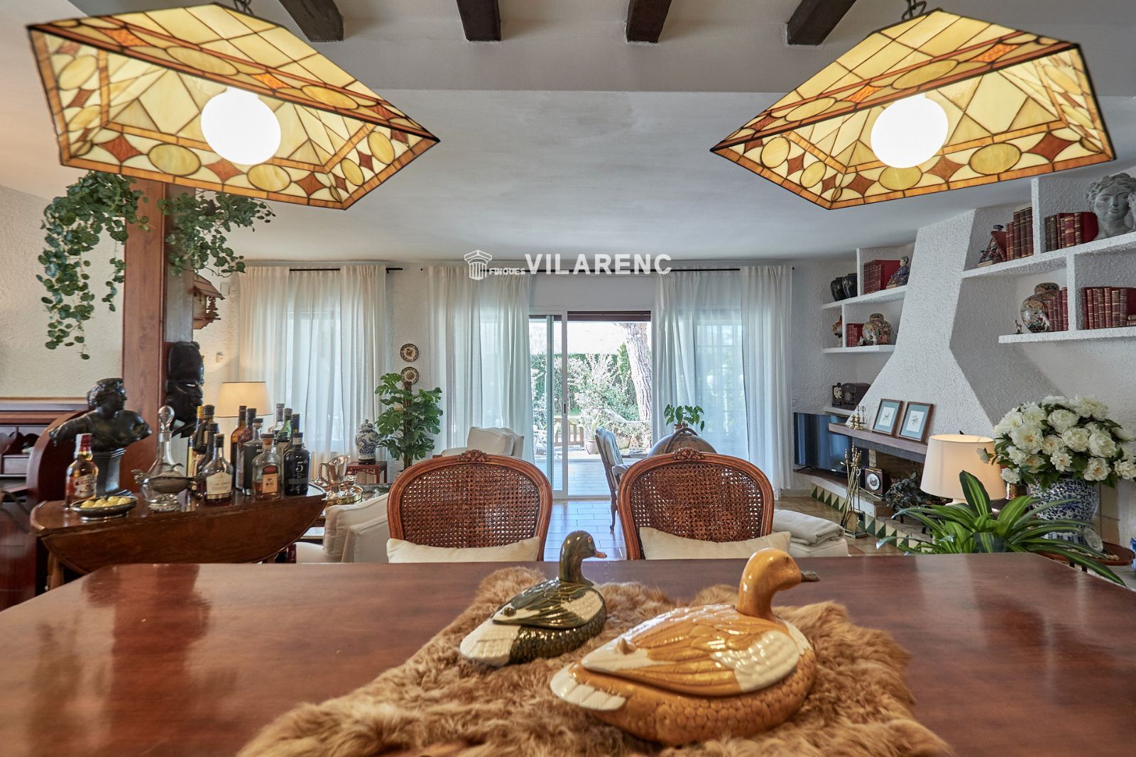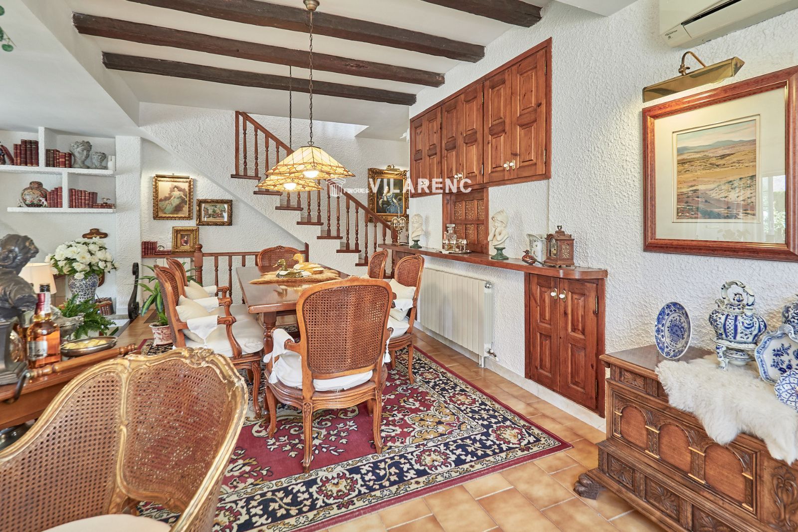 La distribución está pensada para aprovechar el espacio al máximo. En la primera planta nos encontramos con una bonita cocina amueblada y equipada con un estilo rústico y moderno acorde al estilo de la vivienda, un baño completo y un estiloso y amplio salón comedor a dos niveles ideales para crear dos ambientes perfectos ( sala de estar y zona comedor) con chimenea , desde este accedemos a una terraza con cerramiento de aluminio que nos da la opción de disfrutarla tanto en verano como en invierno y un pequeño y acogedor jardín. En la segunda planta nos encontramos con tres habitaciones dobles todas ellas exteriores con un bonito estilo cada uno. La principal es suite con salida a terraza en la que nos encontramos con un lavadero. Las otras dos estancias acceden a un baño común completo y una de ellas tiene salida a una pequeña terraza. Los armarios empotrados en todas las habitaciones facilitan el orden y almacenamiento de los espacios. La vivienda, al ser esquinera y toda exterior, cuenta con mucha luz natural. Dos chimeneas aportan calidez en las estaciones más frías mientras que el aire acondicionado, y la calefacción radial a gas natural, mantienen una climatización agradable durante todo el año. A la planta semi sótano accedemos desde el comedor y nos sorprende su amplio espacio. Un salón de unos 50m² y tres pequeñas habitaciones ó zonas de almacenamiento. Ideal para reuniones con amigos y familiares.
